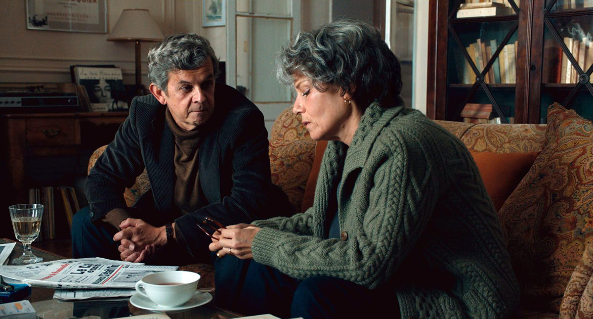 Le début de Moi qui t’aimais pourrait suggérer un film moderne au second degré : nous voyons Marina Foïs et Roschdy Zem au maquillage, « devenir » petit à petit Signoret et Montand : fond de teint, perruque…. Ce préambule cependant est suivi d’une mise en scène extrêmement classique et qui donc met d’autant plus la pression sur les acteurs pour soutenir l’intérêt du public. Avant de voir le film, à en juger par la bande-annonce, je trouvais que Roschdy Zem avait plutôt la bonne carrure mais que Marina Foïs ne « faisait pas le poids », ne serait-ce que par sa minceur. J’avoue avoir changé complètement d’avis. Excellent dans des films comme Roubaix, une lumière (2019) et L’Innocent (2022) ou la mini-série Les Sauvages (2019), Roschdy Zem n’est jamais convaincant en Montand. En revanche, Marina Foïs accomplit une performance remarquable qui, malgré la distance évidente entre son physique et celui de la véritable Signoret, réussit à entrer dans le personnage. Si cela ne suffit pas à sauver le film, elle reste malgré tout une raison pour le voir.