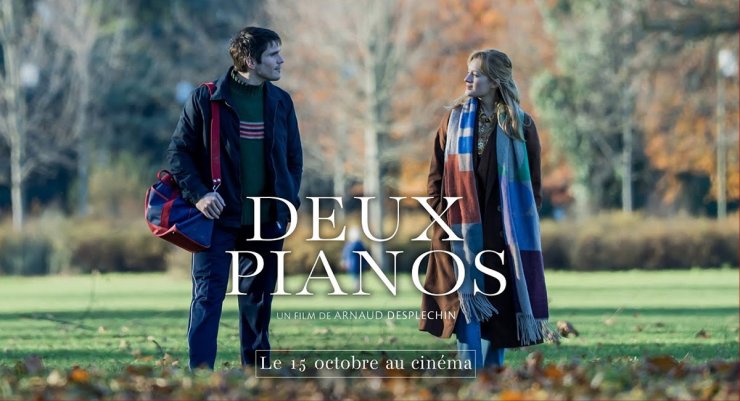 Deux pianos, le 16e long-métrage d’Arnaud Desplechin, est une sorte de digest de tous les poncifs narratifs du cinéma d’auteur masculin, tel qu’hérité de la Nouvelle Vague : Mathias (François Civil), pianiste surdoué et tourmenté (forcément), qui a disparu huit ans au Japon suite à une rupture amoureuse, revient dans sa ville natale (Lyon) pour y donner un concert, répondant à l’appel de sa professeure (Charlotte Rampling) qui a décidé de mettre fin à sa carrière, sentant venir Alzheimer. Il retrouve par hasard Claude (Nadia Tereszkiewicz), la femme qu’il a aimée (et qu’il aime toujours, bien sûr) ; Quand il la rencontre en sortant d’un ascenseur, il tombe raide évanoui, terrassé par l’émotion, puis il erre dans Lyon comme un zombie pour finir complètement noir. Grâce à son talent, il parvient quand même à assurer le concert à quatre mains avec sa professeure.