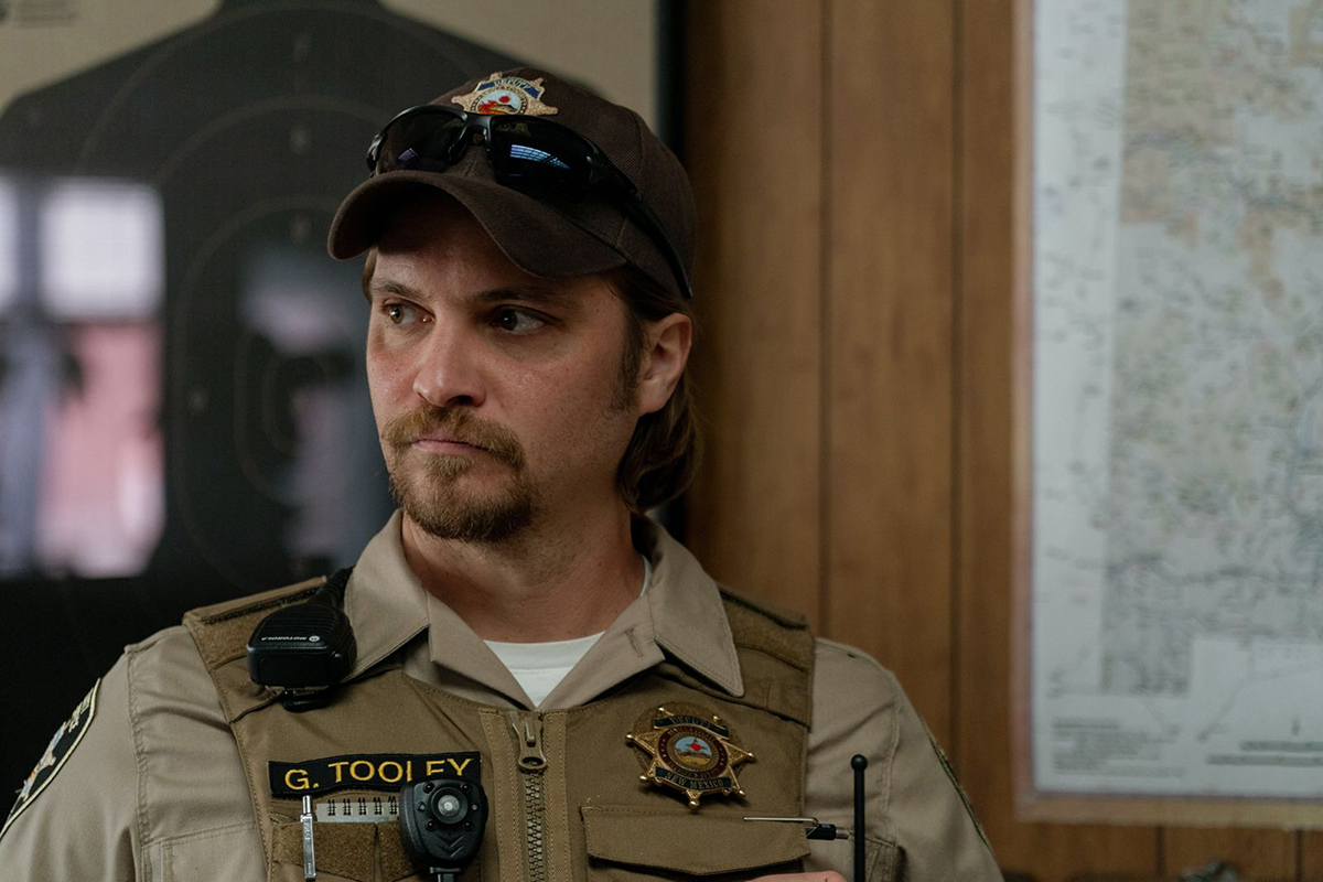 La fuite en avant du shérif prend des allures de western dans les paysages désertiques du Nouveau Mexique mais plonge peu à peu dans la plus grande confusion : on voit arriver une milice privée anonyme par avion qui semble émaner du Klu-Klux Klan (on voit une croix en flammes dans la nuit qui tombe) mais qui pourchasse le shérif après avoir attaqué l’Afro-Américain, jusqu’à une séquence insupportable où le shérif s’empare d’armes de guerre pour tirer interminablement sur tout ce qui bouge (ce qui met la patience des spectateurices à rude épreuve). Il sera finalement neutralisé et transformé en zombie à son tour dans un épilogue surréaliste où le data center est inauguré par la belle-mère devenue la porte-parole du shérif paraplégique et de l’Amérindien tout aussi muet.