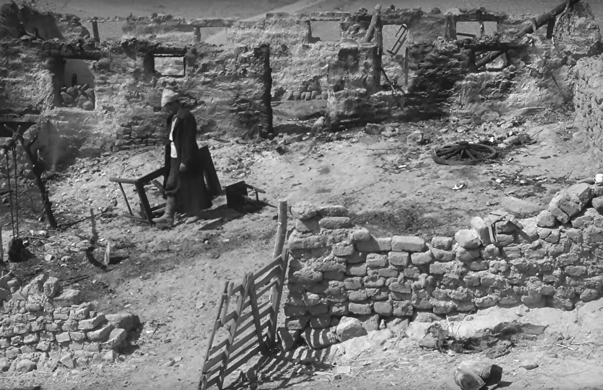 Au village, c’est sa mère qui perd pied, la traitant de canaille, de déchet, de putain : son « inconduite » a porté atteinte à la dignité et à la réputation du village et de ses filles. Diouchen convainc Altynaï d’accepter de partir pour Tachkent [4]. Les adieux sur le quai de la gare la plus proche laissent paraître que ni l’une ni l’autre ne veulent se séparer. Mais le devoir est le plus fort : Diouchen retourne au village. La légitimité qu’il tient du parti empêche les villageois de le lyncher. Il menace les opposants d’une hache : « Je reconstruirai l’école, j’aurai des microscopes et des cartes. L’école aura un nom : Suwan ». Sa décision, la manière de la formuler – exit la seule référence : Lénine – expriment-elles qu’il a compris la vanité de la manière forte ? Il décide aussi de couper le peuplier, symbole d’un ancien monde fétichiste, rejoint par Kartinbaï.