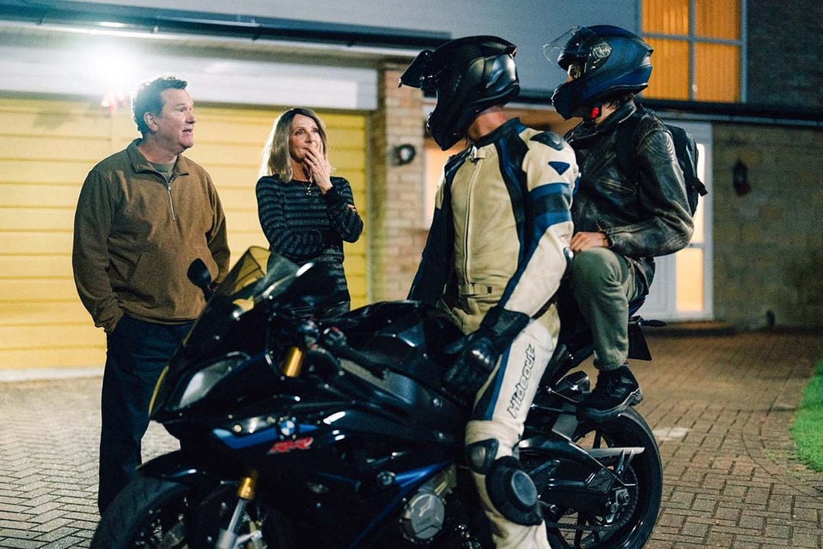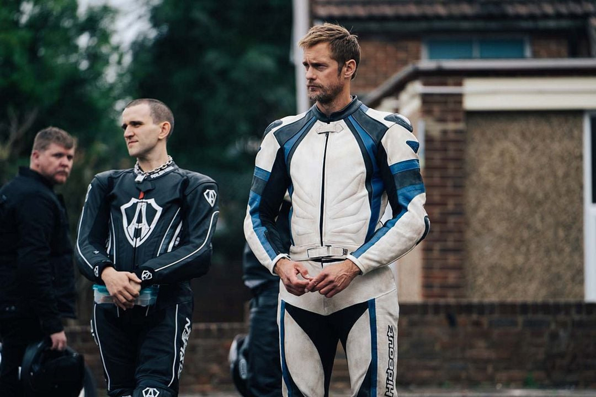 Nous entrons dans le film à dos de moto. Il fait nuit et la caméra tangue alors que l’engin louvoie sur les routes anglaises, crûment éclairées par les phares des voitures croisées, puis dépassées. Cette manière d’ouvrir le film, à la fois brutale (nous sommes comme lancé·es sur l’asphalte, soumis·es à la vitesse de la bécane) et belle (le ballotement de la caméra est fluide, presque délicat) annonce le récit à venir. Car tout du long, Pillion oscillera entre dureté et tendresse, force et douceur ; jusqu’à l’étourdissement.