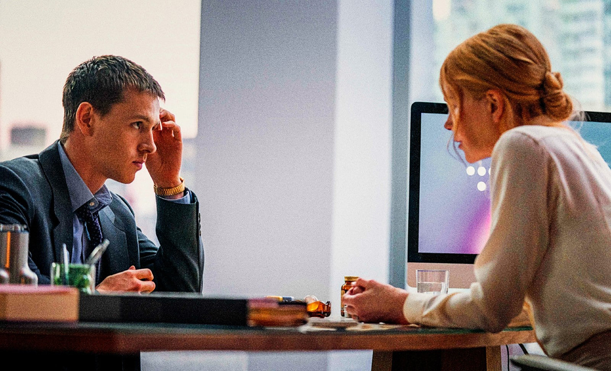 Romy (Nicole Kidman) dirige une entreprise qui conçoit et fabrique des robots qui pourront remplacer les individus pour distribuer les paquets qui sont l’avenir des entreprises type Amazon (des inserts viennent nous rappeler régulièrement l’ordre impeccable qui règne dans le monde des robots). Le film s’ouvre sur Romy en train de faire l’amour, assise sur un homme allongé qu’on comprendra être son mari (Antonio Banderas avec une barbe poivre et sel, très loin de ses rôles sulfureux chez Almodovar). Une fois la chose faite, elle se lève et va dans son bureau pour se masturber en regardant une vidéo porno de soumission. On comprend donc qu’elle a feint de jouir avec son mari. Le lendemain matin on la retrouve en mère aimante préparant les en cas de ses deux filles adolescentes en prenant le petit déjeuner en famille, dans un appartement lumineux typique de la upper middle class. Apparemment heureuse en ménage avec son metteur en scène de mari encore très amoureux, elle a quand même du mal à éteindre son portable d’executive woman.