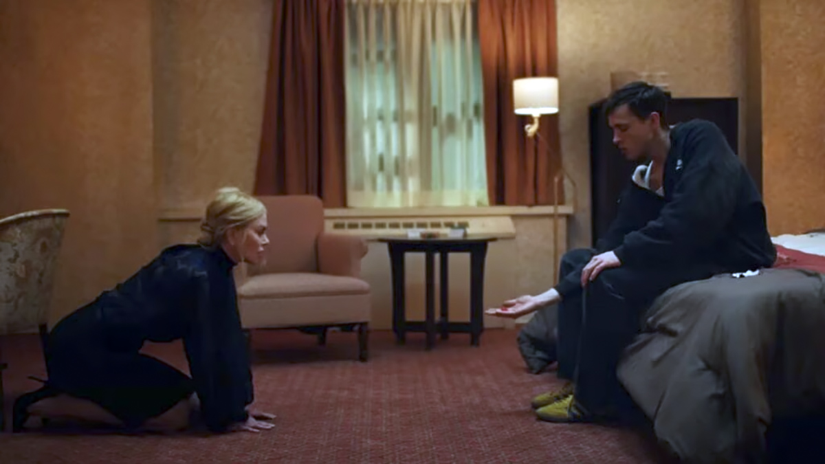 Marchant d’un pas vif sur un trottoir new yorkais, élégamment habillée de blanc, elle s’arrête pétrifiée à la vue d’un chien noir qui s’acharne sur un homme. Mais un jeune homme intervient et calme le chien avant de le rendre à son maître. Cet incident apparemment insignifiant sera la clé de leur rencontre : Samuel (Harry Dickinson), l’ami des chiens, est recruté comme stagiaire dans l’entreprise dont elle est la patronne, et la choisit comme mentor. Leur première entrevue se termine par un baiser à pleine bouche. La suite est moins convenue. Samuel a compris que Romy a besoin d’ingrédients un peu plus corsés pour pouvoir jouir. Il va alors mettre en scène des scénarios de soumission sur le modèle du rapport du chien avec son maître. On peut admirer la façon dont la réalisatrice filme leur première scène sexuelle, en gros plan sur le visage de Kidman, masquant ce qui se passe dans le bas de son corps, qu’on comprend parfaitement sans avoir besoin de le voir.