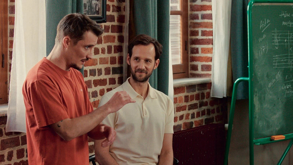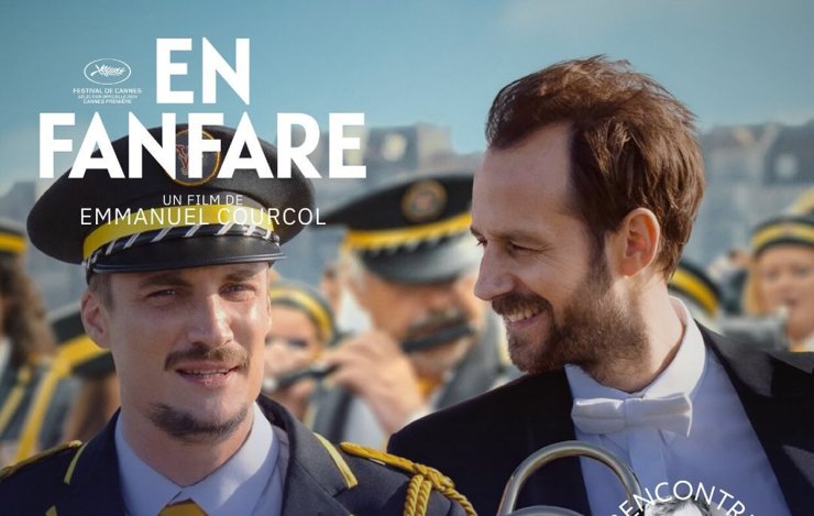 En fanfare est le dernier film « phénomène de société » made in France. Succès inattendu (plus d’1 million de spectateurs en trois semaines) pour un film au budget moyen (à peine plus de 6 millions d’euros) avec deux acteurs certes connus mais pas des stars dans les rôles principaux. On rit, on sourit, on s’attendrit, on pleure : l’émotion est garantie comme j’ai pu le constater à la séance de l’UGC Gobelins où je l’ai vu – beaucoup de regards brouillés et de mouchoirs quand la lumière revient (je n’ai pas fait exception). Benjamin Lavernhe interprète Thibaut, un chef d’orchestre trentenaire mondialement célèbre qui découvre à la suite d’un malaise qu’il est atteint de leucémie. Il apprend que sa sœur Rose (Mathilde Courcol-Rozès) est incompatible pour effectuer une greffe de moelle osseuse et qu’elle n’est pas sa sœur. Sa mère lui révèle qu’il a été adopté et qu’il a un frère, Jimmy (Pierre Lottin), adopté lui aussi par une famille modeste du nord de la France. La surprise passée, Jimmy accepte d’être donneur. La greffe prend et les frères se rapprochent, malgré leurs différences, grâce à leur passion commune pour la musique. Alors que la maladie de Thibaud menace à nouveau, les deux frères sont réunis symboliquement par la musique à la fin de la première représentation à La Seine Musicale du concerto qu’il a composé : Jimmy et sa fanfare, dans la salle, jouent le Boléro de Ravel, que reprend l’orchestre de Thibaut.
