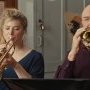 Dans un article du New York Times , Manohla Dargis faisait remarquer que dans le cinéma hollywoodien, et dans les œuvres sur la masculinité « en crise » en particulier, « les films continuent à préférer les histoires d’hommes qui changent le monde pendant que les femmes les attendent ». Le cinéma français n’est pas en reste. Dans En fanfare, le personnage de Sabrina (Sarah Suco), qui joue dans la fanfare, en fournit un bel exemple. Elle est visiblement amoureuse de Jimmy et attend qu’il veuille bien la remarquer. Ils finissent par s’embrasser – sur son initiative à elle. Même si on la voit brièvement militer auprès des grévistes de l’usine locale, Sabrina existe en tant que personnage surtout pour valider le sex-appeal de Jimmy. Celui-ci est séparé de sa compagne, la mère de sa fille. L’adolescente apparaît dans une brève scène qui signale que sous ses airs bourrus, Jimmy est un grand sensible. De même, Thibaut souffre de vivre une relation distante avec une femme à New York, mais on ne la voit qu’un instant sur une photo. Selon les règles du buddy movie, la véritable relation du film est entre les deux frères, les émotions profondes, celles qu’ils expriment et partagent dans une sorte de complémentarité où la différence de classe se superpose à des comportements de genre très stéréotypés : Jimmy, bagarreur qui a besoin d’un souffle puissant pour jouer du trombone est l’élément « masculin » ; Thibaut, « homme doux » qui aime la musique classique et manie sa baguette avec délicatesse, l’élément « féminin ».