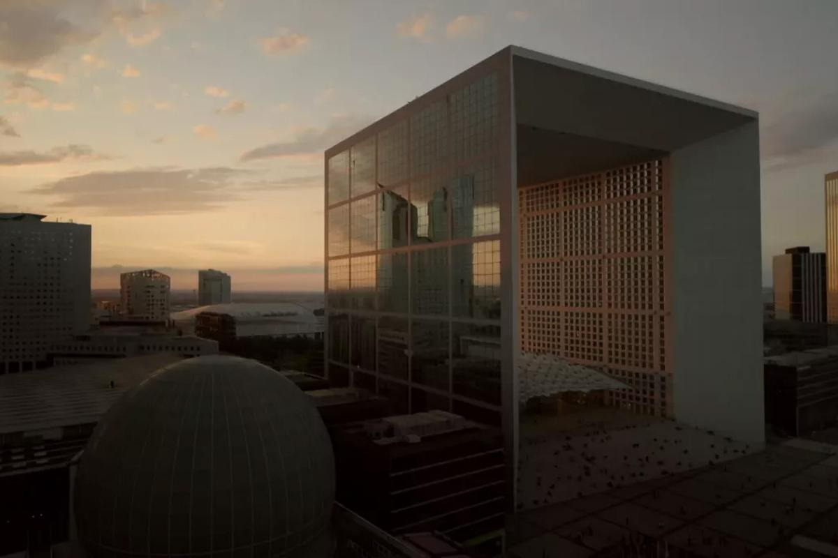 Son projet, c’est « le Cube », pas une « arche » qui supposerait de la rondeur : un hectare au sol, deux piliers et un toit d’un hectare chacun, 110 mètres de hauteur. Le Cube sera blanc et lumineux, couvert du meilleur marbre de Carrare, le tout pour 40 000 m² de bureaux. Une peinture monumentale de Jean Dewanes doit courir sur les parois de trente-cinq étages du pilier sud. Le Président est fasciné par la beauté du Cube, et nouera avec l’édifice et son architecte une relation farouche.