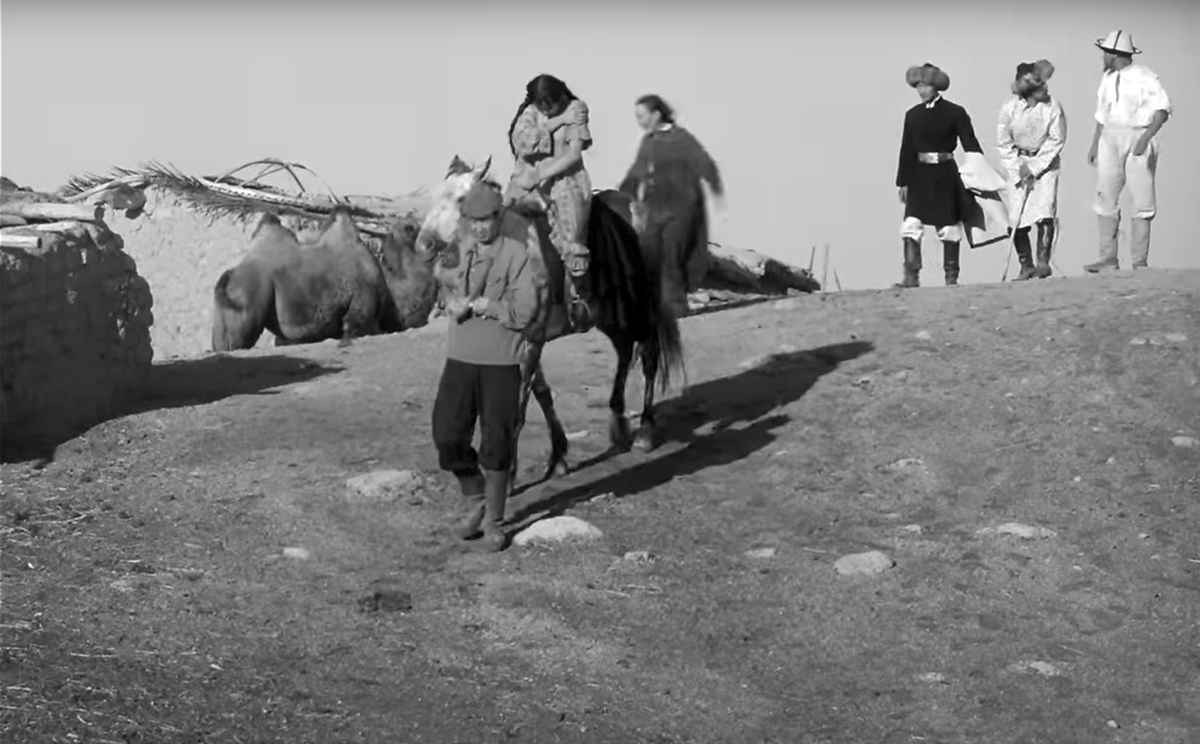 L’école reprend. Il faut répondre à « qui sont tes ennemis ? » – « le baï, les capitalistes, les millionnaires, le mollah ». Diouchen est heureux des progrès de ses élèves, on le voit sourire, enfin ! Altynaï, elle, est triste, perdue, tandis que sa mère, qui vient la chercher pour le mariage, se fait mettre à la porte de la classe. Le baï vient chercher de force sa promise, nouvelle bagarre. Altynaï crie de ne pas toucher au maître, en vain : le frêle Diouchen n’a pas le bon gabarit, il se retrouve en sang. Le baï kidnappe Altynaï, l’attache à son cheval et la conduit dans son campement. Blottie dans une tente, Altynaï est terrorisée, observant le baï se faire raser, se parfumer, avant qu’il lui déchire les vêtements et la viole. Le lendemain, désespérée, elle devient objet de curiosité pour la population du camp… jusqu’à ce que Diouchen apparaisse, entouré de soldats armés, pour la récupérer et la ramener au village.