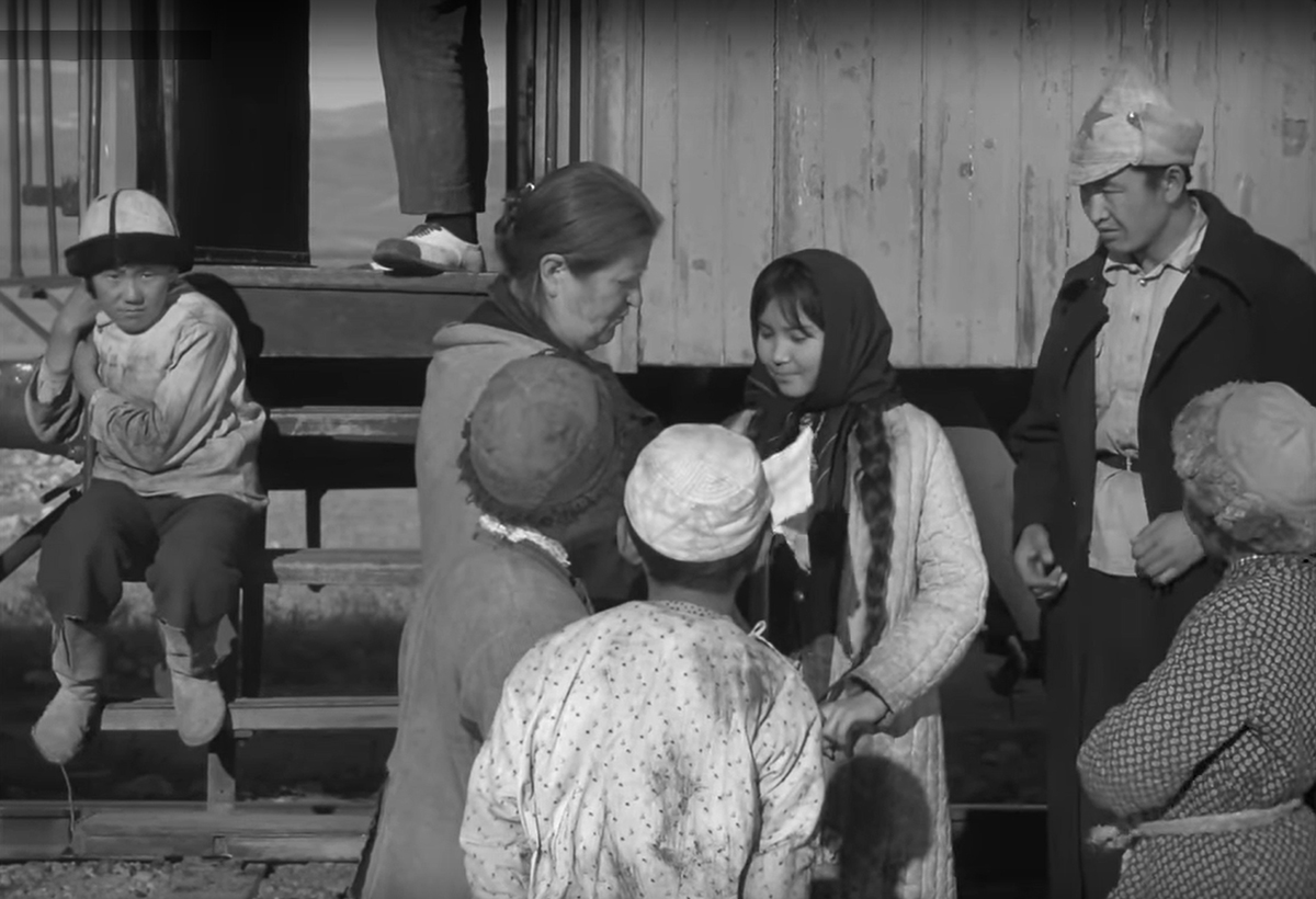 Au village, c’est sa mère qui perd pied, la traitant de canaille, de déchet, de putain : son « inconduite » a porté atteinte à la dignité et à la réputation du village et de ses filles. Diouchen convainc Altynaï d’accepter de partir pour Tachkent [4]. Les adieux sur le quai de la gare la plus proche laissent paraître que ni l’une ni l’autre ne veulent se séparer. Mais le devoir est le plus fort : Diouchen retourne au village. La légitimité qu’il tient du parti empêche les villageois de le lyncher. Il menace les opposants d’une hache : « Je reconstruirai l’école, j’aurai des microscopes et des cartes. L’école aura un nom : Suwan ». Sa décision, la manière de la formuler – exit la seule référence : Lénine – expriment-elles qu’il a compris la vanité de la manière forte ? Il décide aussi de couper le peuplier, symbole d’un ancien monde fétichiste, rejoint par Kartinbaï.