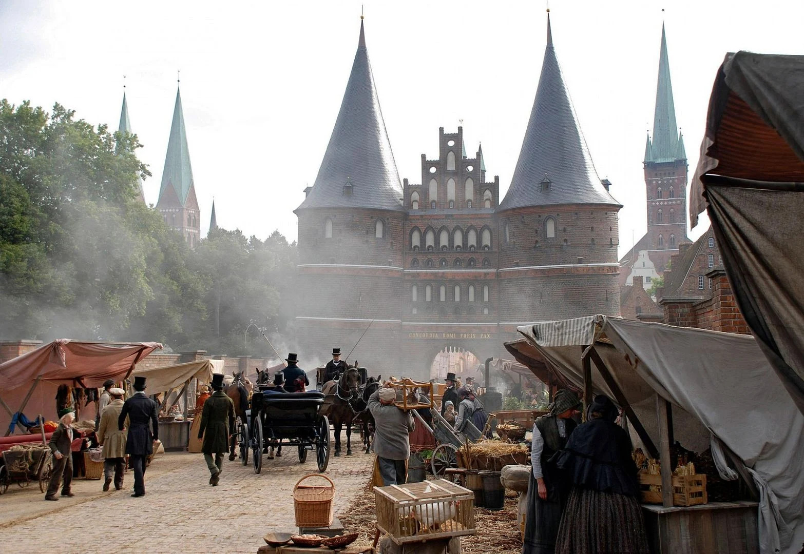 Une famille qui décline ? On la suit sur quatre générations [1], de 1835 à 1877, à travers les vingt-sept personnages de la famille et les innombrables protagonistes du récit. Nous avons le grand-père (Johann, fils d’un ancêtre Johann), le fils (Johann, dit Jean, consul des Pays-Bas), les petits enfants (Thomas, Christian, Antonie [dite Tony], qui auront eux-mêmes des enfants, dont Hanno qui mettra un point final à la dynastie, et Clara). Clara, qui épouse un pasteur et part à Riga, est totalement absente de la série ! Cette généalogie est fondatrice : c’est à elle, consciencieusement couchée sur papier gaufré, que doivent se référer tous les personnages [2] – naissances, mariages, décès, alliances – comme une feuille de route du savoir-vivre entre générations et sexes. Cette famille bourgeoise et protestante vit à Lübeck, ville alors essentielle de la Ligue hanséatique [3] maîtresse du commerce (le blé en premier lieu) dans une grande partie de l’Europe du Nord. Le déclin de la famille est parallèle à celui de la ville, dès lors que Hambourg devient prépondérante, s’internationalise et se diversifie, et que l’Union douanière (Zollverein, 1833) tend à bousculer les territoires de la Ligue. Au fil du temps, les personnalités s’individualisent, l’emprise religieuse semble s’essouffler. On peut lire le roman comme le récit, par le menu, des mutations du capitalisme au cours du XIXe siècle, et de ses effets sur les personnes.