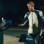 À l’inverse, Ray impose d’emblée une forme d’évidence – économie de gestes, autorité silencieuse, présence compacte. L’un cherche sa place, l’autre semble toujours sûr de la sienne. Collin restera passager, accroché au dos de Ray faisant rugir sa moto. Quelque chose de l’ordre de la confiance s’y joue, mais une confiance qui, obligatoirement, passe par le renoncement à diriger. Être porté plutôt que se porter soi-même. C’est là que le trouble s’intensifie. Car si Collin adhère à ce cadre, s’il y trouve même une forme d’apaisement, c’est aussi qu’il y projette autre chose : la possibilité d’une fusion amoureuse, d’un abandon qui ferait enfin tenir son désir. Ce qu’il investit dans la relation excède les règles qui l’organisent. Là où Ray maintient une structure, Collin cherche une réciprocité. Et lorsque Ray cède aux demandes de son amant (lorsqu’il accepte de diner avec ses parents, lorsqu’il permet à Collin de dormir dans son lit après le décès de sa mère), Collin y voit des preuves d’amour là où Ray n’y voit qu’un renoncement temporaire. Le film capte alors brillamment un léger décalage, presque imperceptible, mais constant. Collin donne tandis que Ray retient. Cette asymétrie ne se réduit pas à une simple opposition ; elle produit au contraire une tension continue, où les gestes les plus doux restent pris dans une logique de contrôle et où l’abandon lui-même devient une forme de travail. Ce qui se joue entre eux ne relève donc pas seulement d’un rapport intime, mais d’un ajustement plus large, celui d’apprendre à se tenir dans un monde qui ne vous offre pas d’emblée une place. Collin s’y essaie, en épousant une forme, en s’y pliant et en y croyant. Mais quelque chose résiste. Son désir d’amour, lui, ne se laisse pas entièrement discipliner.